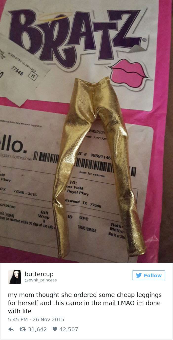 ▼19.「我媽媽以為她在網上訂了超便宜褲襪,結果寄來的東西是這個,我真的快笑死。」