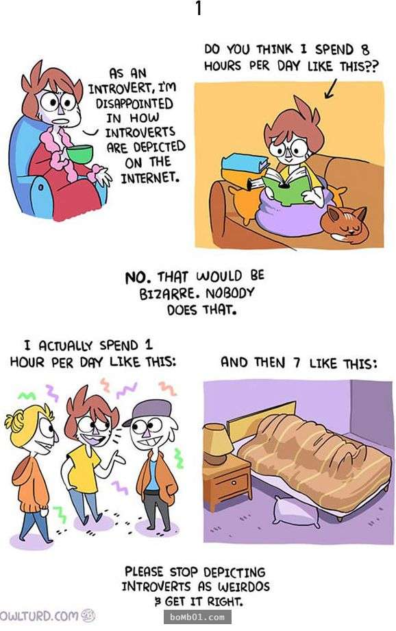 ▼1.「身為一個內向的人,我對於網路上對於我們的描寫感到非常失望。」「你們以為我一天花8小時做這件事?」「當然不是,這樣太奇怪了,沒有人會這樣做。」「其實我花一個小時社交。」「另外七個小時這樣。」