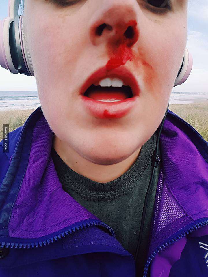 ▼莎拉說她有穿鼻環,會流血就是因為鼻環穿刺了她的鼻腔,當他被打中時,那群不良少年還在一旁大笑,「幸好我沒有骨折,只是流了很多血,感覺就像灼燒的痛苦。我其實沒有那麼擔心自己的傷,比較慶幸小海豹安然無事。」