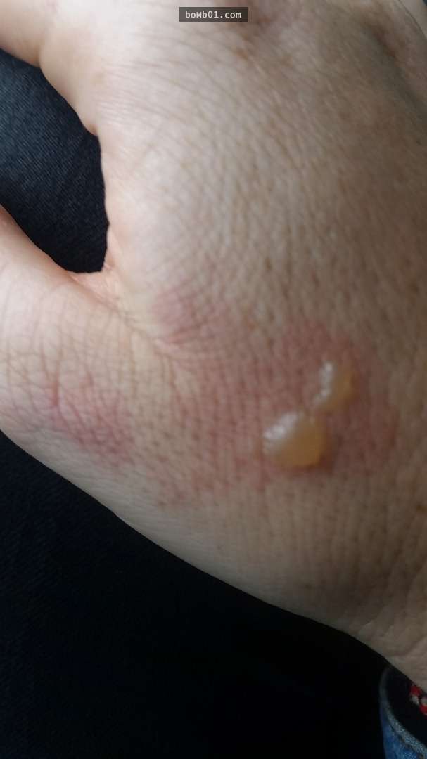 ▼空服員趕緊拿來一桶水倒在耳機上,發現耳機內的電池和耳機的外殼都融化了黏在飛機地板上,飛機上充斥著一股塑膠燒焦融化的臭味,使得很多人呼吸困難不斷咳嗽。在過程中她的手被燙到起水泡,臉頰和脖子都被熏黑了,十分恐怖。