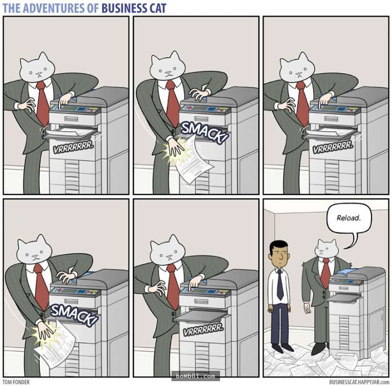 ▼5.員工:「新的印表機送到了。」貓老闆:「太棒了。」