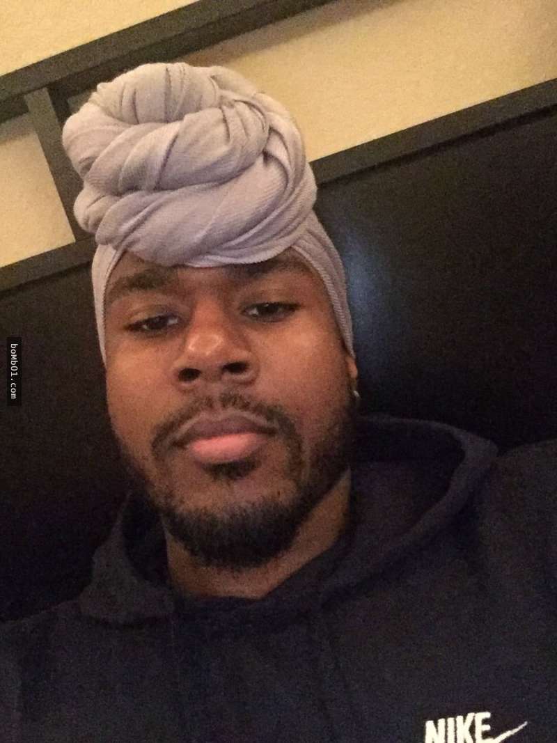 ▼很多國外的女生都有這樣的頭巾,可以綁在頭上當做服裝的搭配。McNeil拿了女友的頭巾,並將它戴在頭上拍照,還將照片上傳的推特上,引起很大的迴響。不到一天他就已經得到了超過3萬個讃和2萬個轉推。