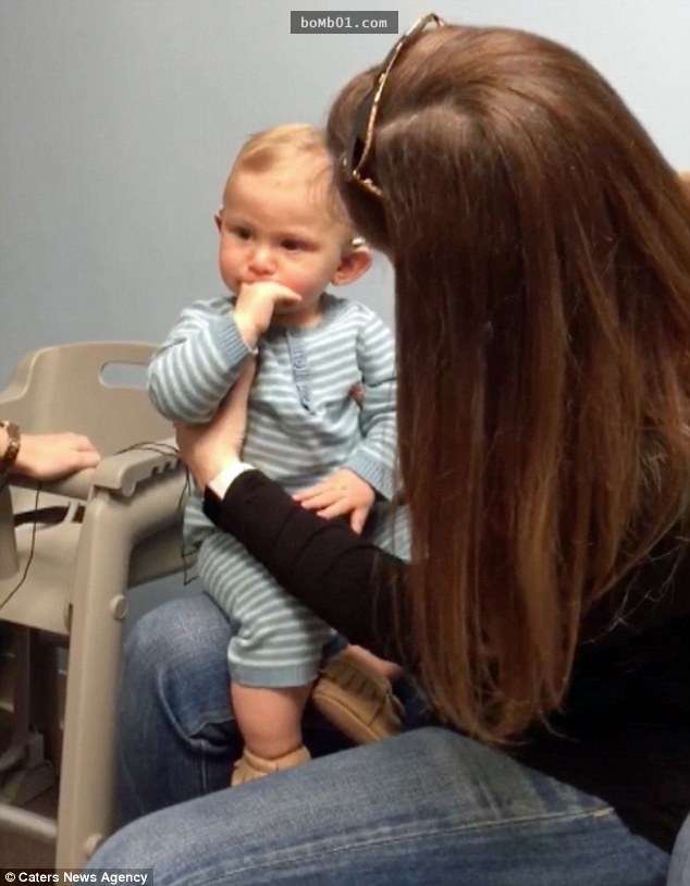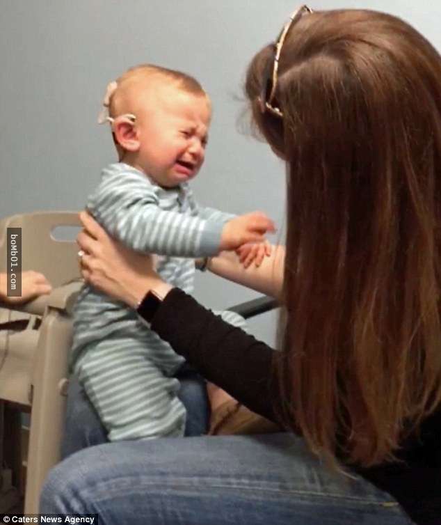 ▼治療過後,媽媽再一次呼喚他的名字。第一次聽到媽媽聲音的Dawson忍不住露出了驚恐的表情,然後爆哭,讓人覺得很心疼。