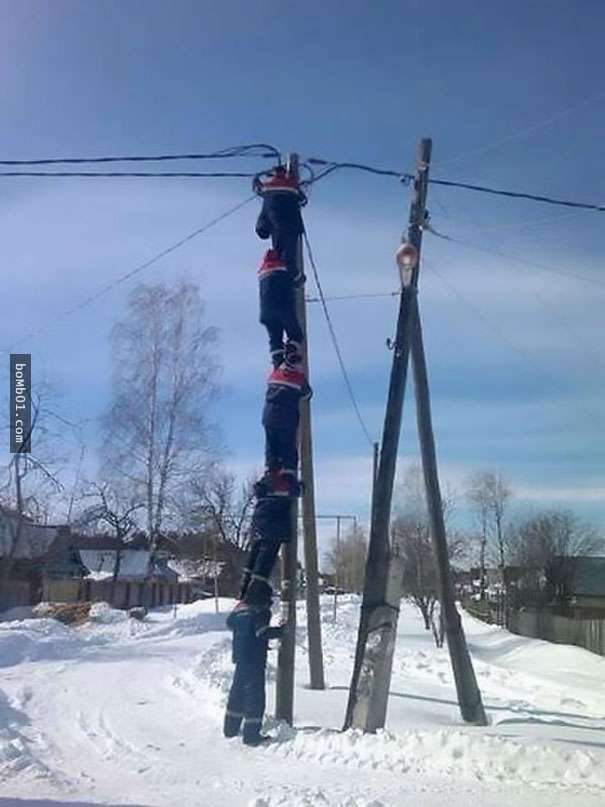 ▼連梯子都沒有嗎?現在做電工還需要先去啦啦隊實習?