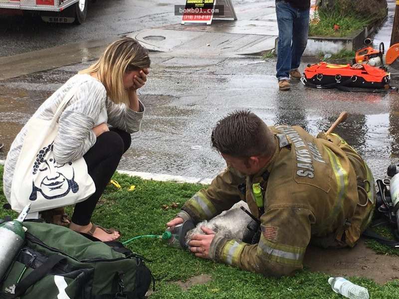 ▼因為吸入了大量濃煙,Marley已經失去呼吸,但消防員Andrew Klein卻沒有放棄。