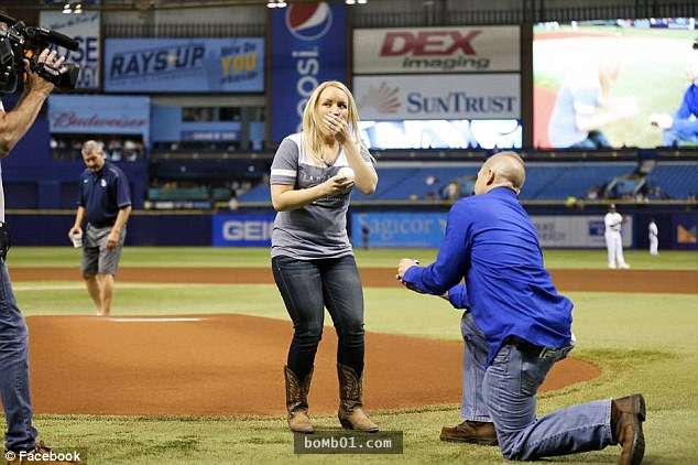 ▼2015年時,Cameron在棒球場向女友求婚,今年3月,它們終於在佛州戴德市一處農場完婚。