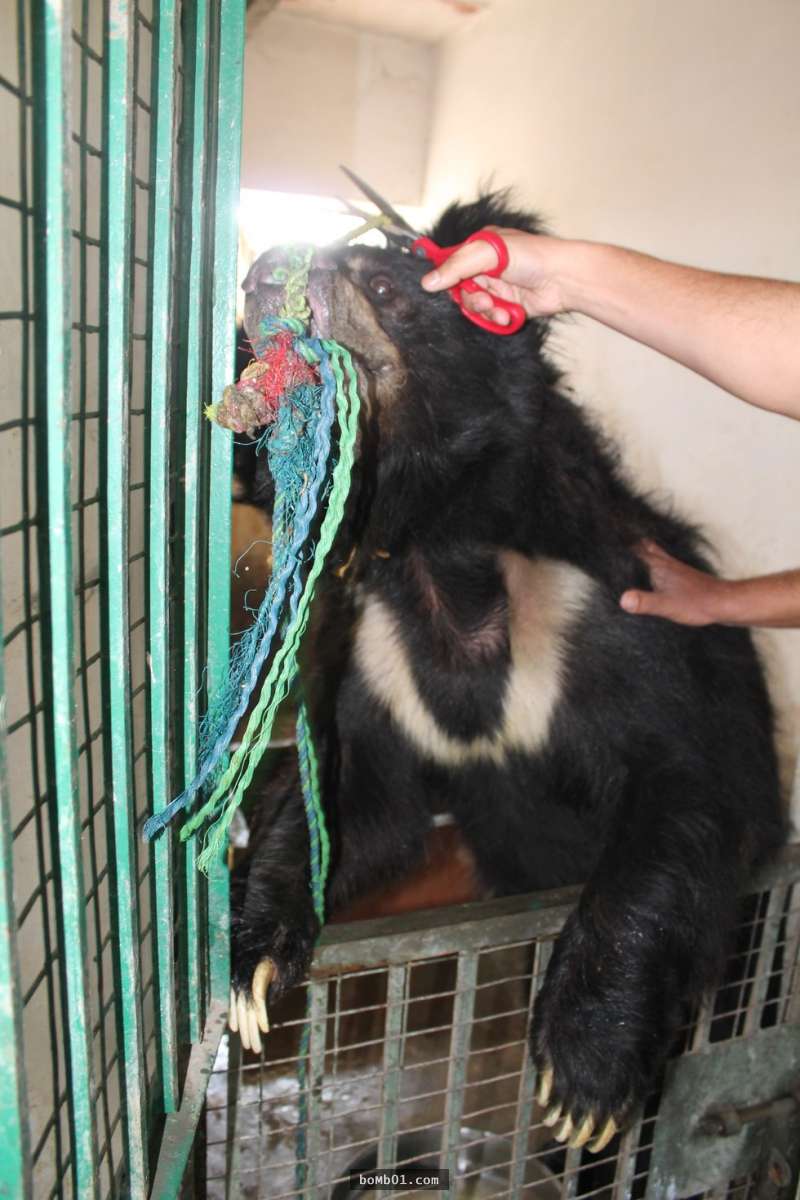 ▼戈爾迪被送到了印度境內的熊熊保護區,救援團隊為牠所做的第一件事當然就是取下繩子,戈爾迪鼻尖的傷口還是存在,但他們相信總有一天會成功癒合。