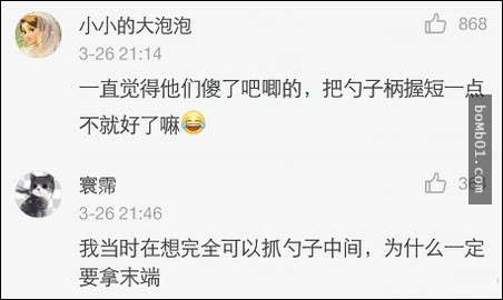 ▼這個故事也引來挖苦,一些網友覺得明明把匙子柄握短一點就能解決問題,卻偏偏要拿末端找麻煩。