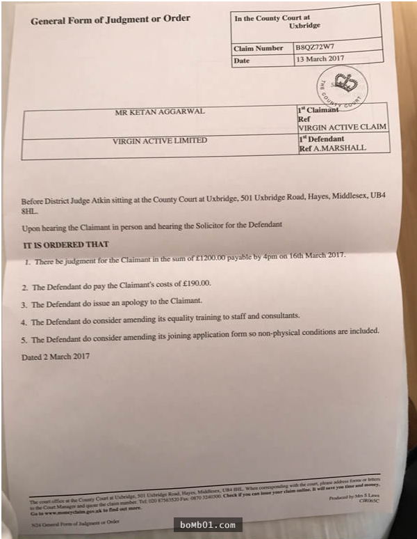 ▼之後的兩年裡,Ketan天天到圖書館報導,還在網路上研讀法律條文,最後自己寫訴狀將健身房告上法院。他在法庭上陳述了自己的案例,以一己之力對抗擁有強大律師團的健身房,最後竟然大獲全勝。