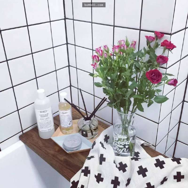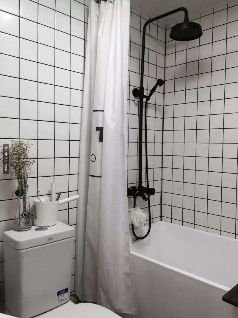 ▼浴室當然也是改造重點之一,再貼上了極簡的黑白小磁磚後,整間浴室嶄新又明亮。