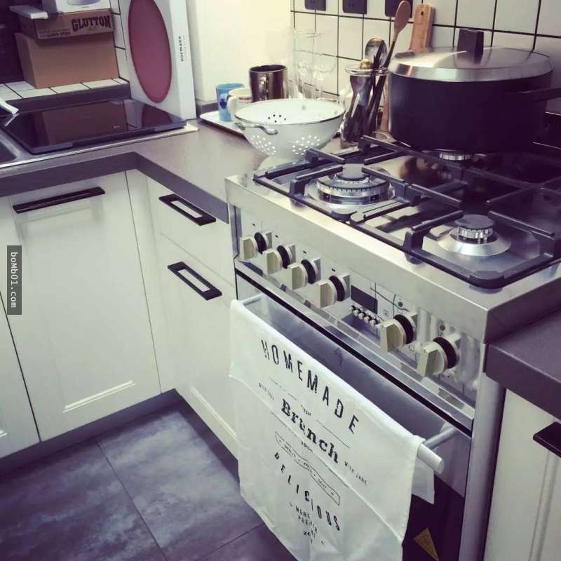 ▼廚房也全部重新貼上黑白瓷磚,Allen笑言說:「差點逼死裝潢師傅。」