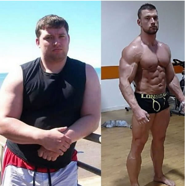 ▼在健身教練的幫助下,他學著控制飲食,循序漸進健身,再也不吃那些高熱量的食物,菜單變成了魚、雞肉、蛋白等等。短短一年時間,他減去了41kg。