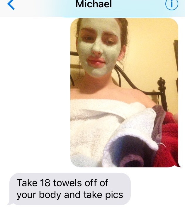 ▼賈姬(Jacquie Ross)是一名來自美國北加州的16歲高中女孩,她在網路上公布這段與男性朋友麥克(Michael)對話紀錄被網友讚翻。在對話的一開始,麥克本來是要賈姬傳「今天穿的衣服」給他看,賈姬跟麥可說不方便拍照,並傳了這張看起來像沒穿衣服的照片給他。