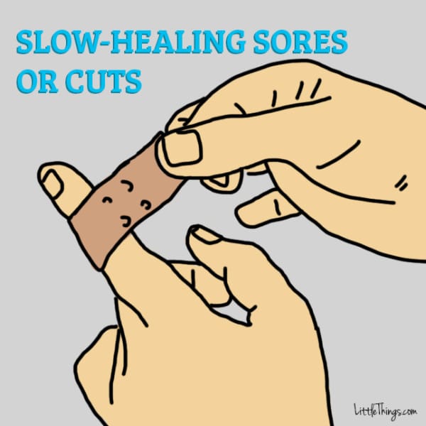 ▼3. 傷口難以癒合:身體與糖尿病對抗的過程中,瘡與傷口集合的時間會變長。高血糖會影響血流,造成神經損傷,身體的傷口就比較難愈合。