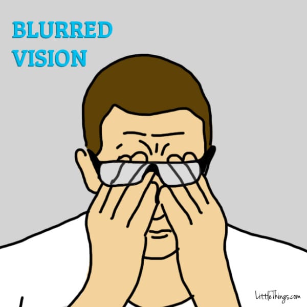 ▼4. 視線模糊:糖尿病最常見的症狀就是視線模糊或者飛蚊症。這是折射的問題,身體中的血糖增高,會改變晶狀體與眼睛。視線模糊其實是二型糖尿病的早期警訊,不要忽略這一症狀,出現後一定要去看醫生。