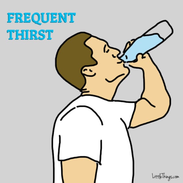 ▼9. 經常口渴:有了尿頻的症狀,當然會越來越口渴。喝得多,尿得也多,情況會越來越嚴重。