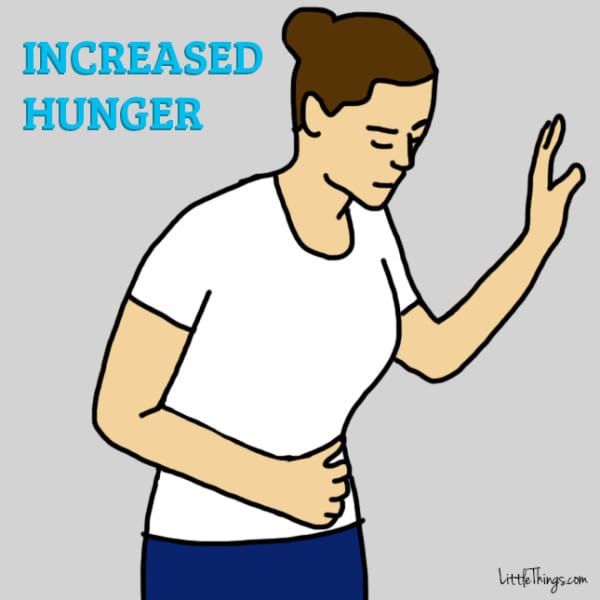 ▼2. 明顯的飢餓感:胃口毫無來由增進也是糖尿病的一個常見症狀。胰島素在肌肉、脂肪與其他組織中運作不順暢的話,胰臟就會釋放出更多胰島素。高量的胰島素會刺激大腦,讓人感覺飢餓。感覺飢餓的原因有很多,但那種漸進式的飢餓感,加上不斷減輕的體重,就需要好好注意了。