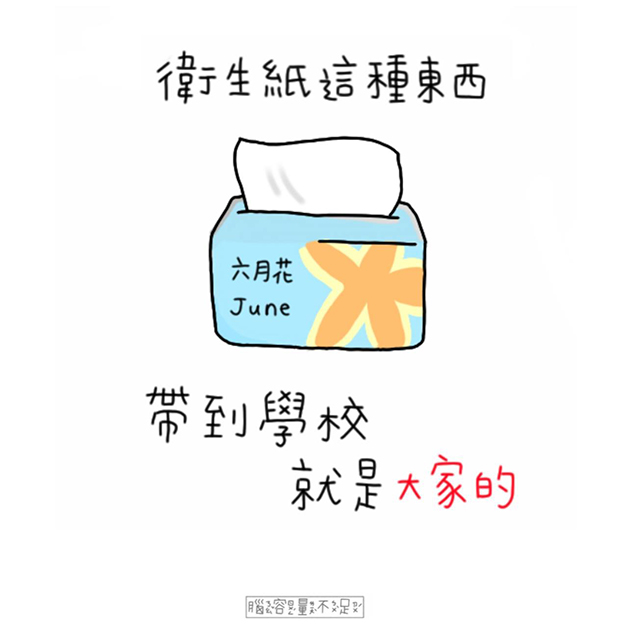 ▼衛生紙帶到學校就是大家的,兩天之內就被抽光光。