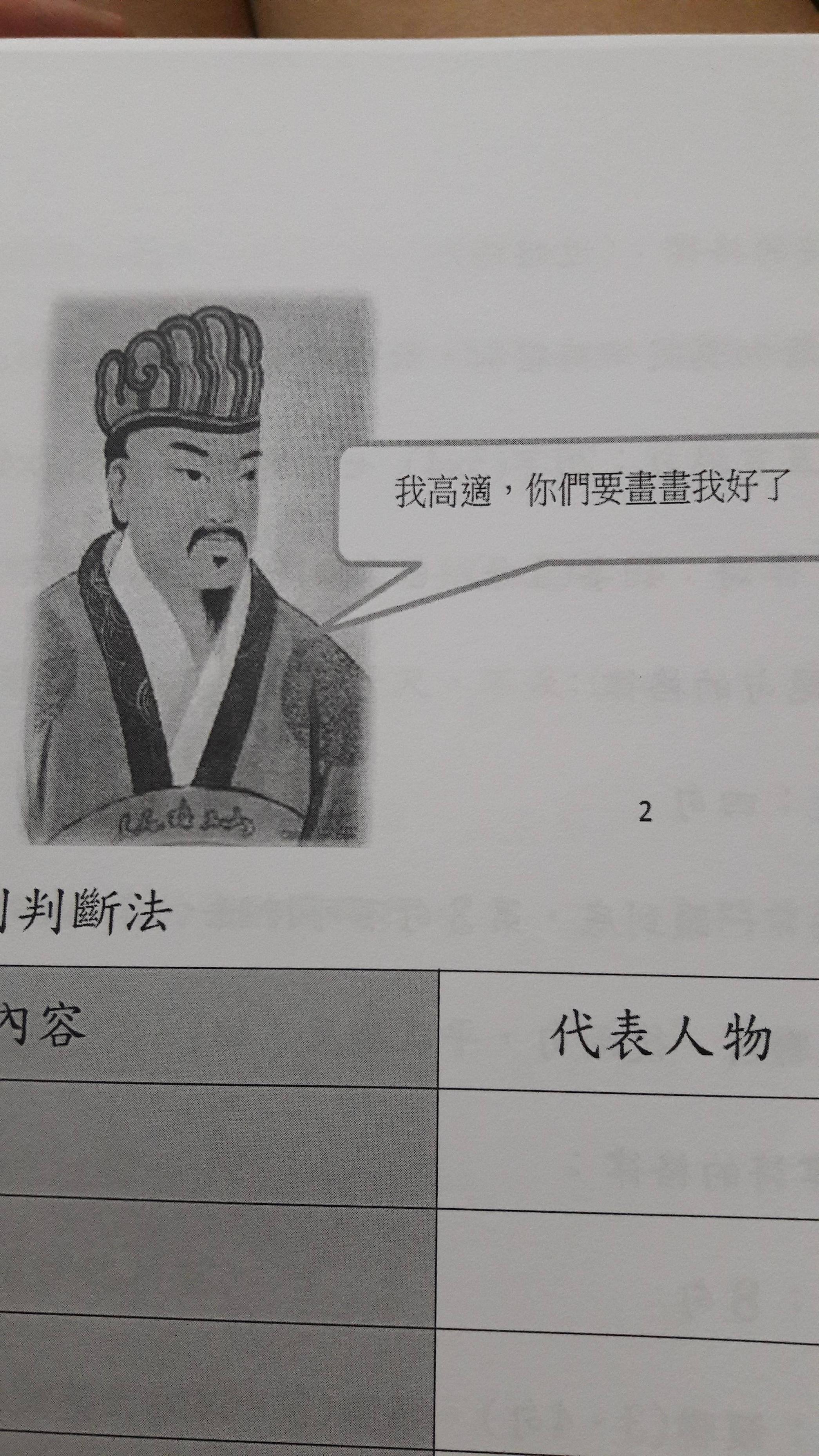 2017年04月13日還記得我們上學時候,拿到的講義都超無聊,上面好像只有姓名班級座號,偶爾有幾個歷史人物還醜到爆,讓人忍不住想要畫幾筆改動一下。其實在國文課本的作者畫像上塗鴉已經成了慣例,幾乎每個歷史人物都曾遭過毒手。最近,一名網友發現補習班講義竟然直接拿這事搞笑,真是超狂的。