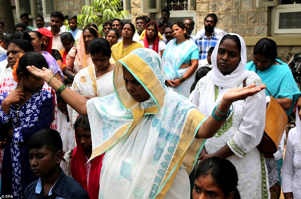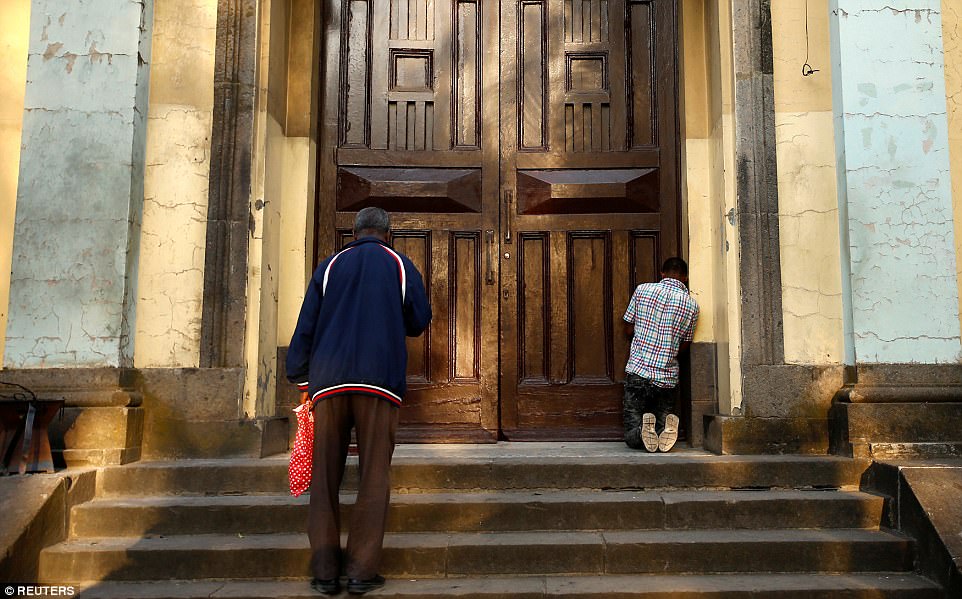 ▼那些沒來得及進入教堂的人就在門口的台階上表達敬意。