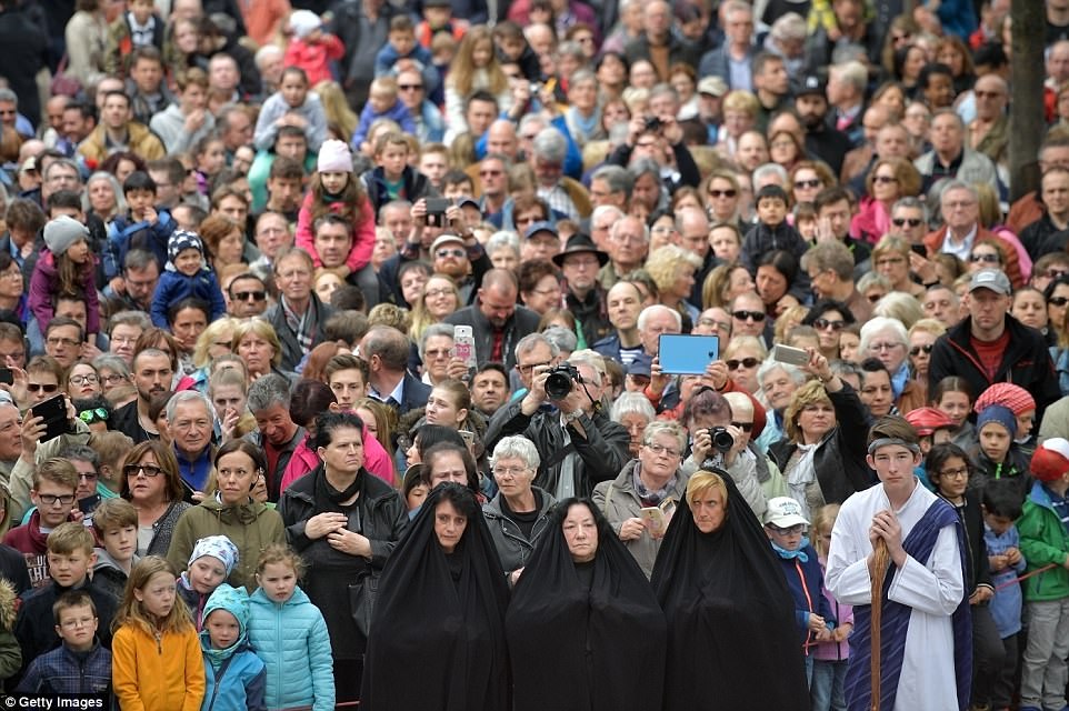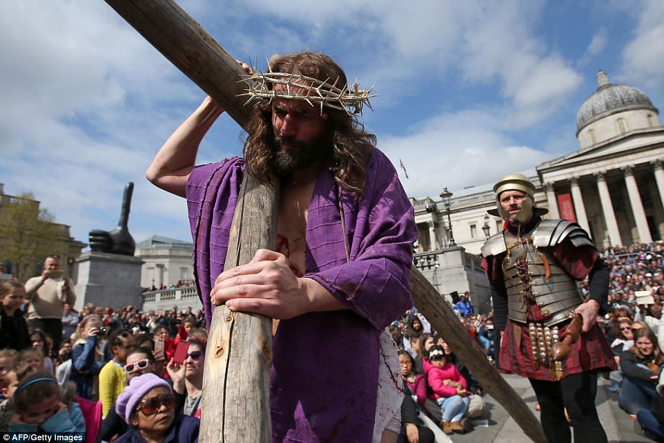 ▼演員James Burke-Dunsmore在廣場上扮演耶穌。