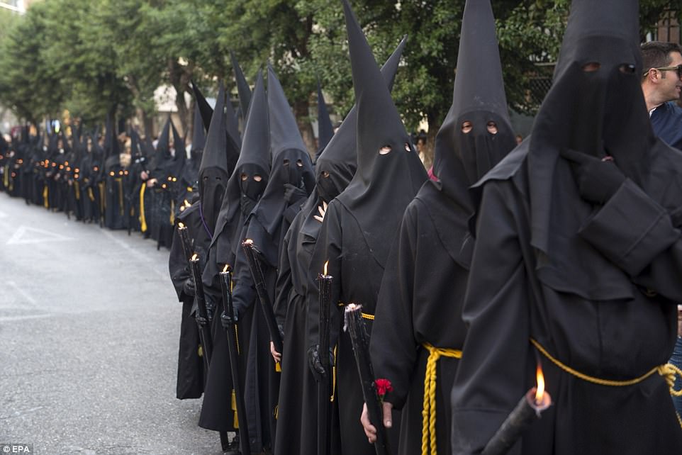 ▼遊行的拿撒勒派(Nazarenos)戴著尖帽,很有特色。