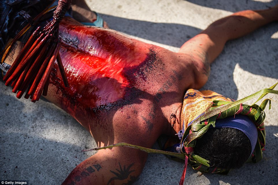 ▼當地的天主教領袖曾公開反對這樣的做法,衛生部官員也不認同這種自殘的紀念方式,但虔誠的教徒們還是堅持這樣做。