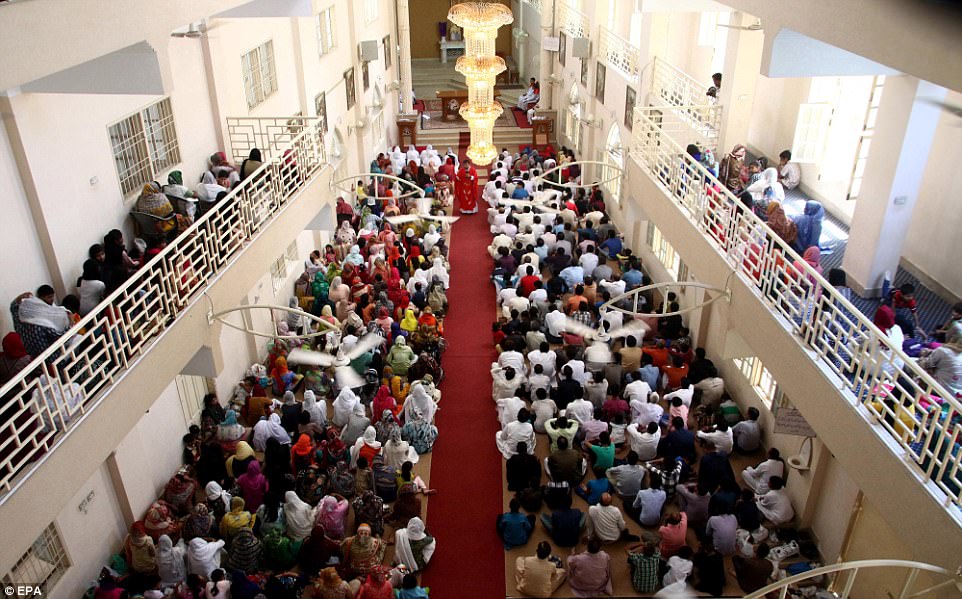 ▼教徒們進入教堂禱告,雖然巴勒斯坦大部分國民是回教徒,也有2%左右的民眾是基督徒。