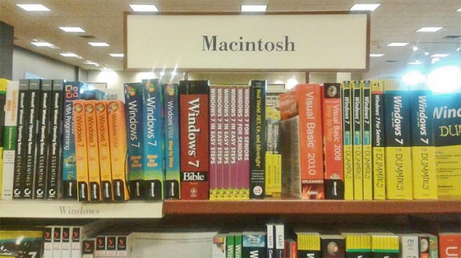 ▼23.麥金塔的指示牌下方卻放著Windows的書籍…