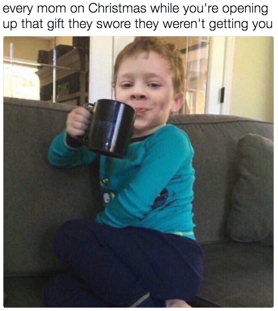 ▼7.每次媽媽都會騙你他們不會買禮物,但聖誕節一到她們卻會用這種表情看你拆禮物。