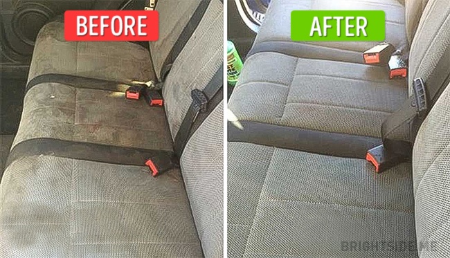 ▼汽車上的安全座椅可以不用乾洗,把醋、清潔劑、小蘇打、水混合成溶液噴在座椅上,用刷子慢慢的清理,就像新的一樣。