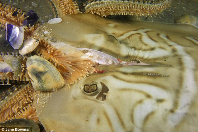 ▼剛開始,潛水員在海床上發現了五隻頭部被劈開的提琴鰩,牠們的傷口怵目驚心。