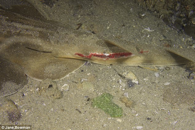 ▼除了犁頭鰩,潛水員還發現了一些被傷害的魟魚,牠們的鰭和尾巴被砍了下來,樣子非常淒慘。