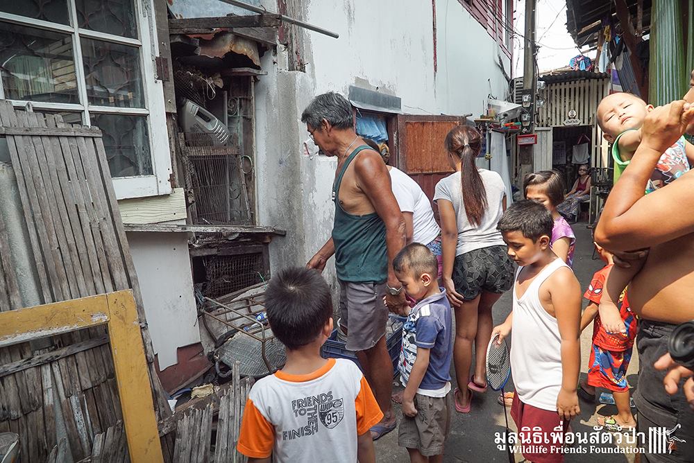 ▼泰國野生動物友善協會的志工按照匿名通報者的敘述,穿過一個髒亂的社區,來到一棟廢棄的空屋前,就赫然發現在牆縫的鐵絲網內,有一對漆黑的眼睛…