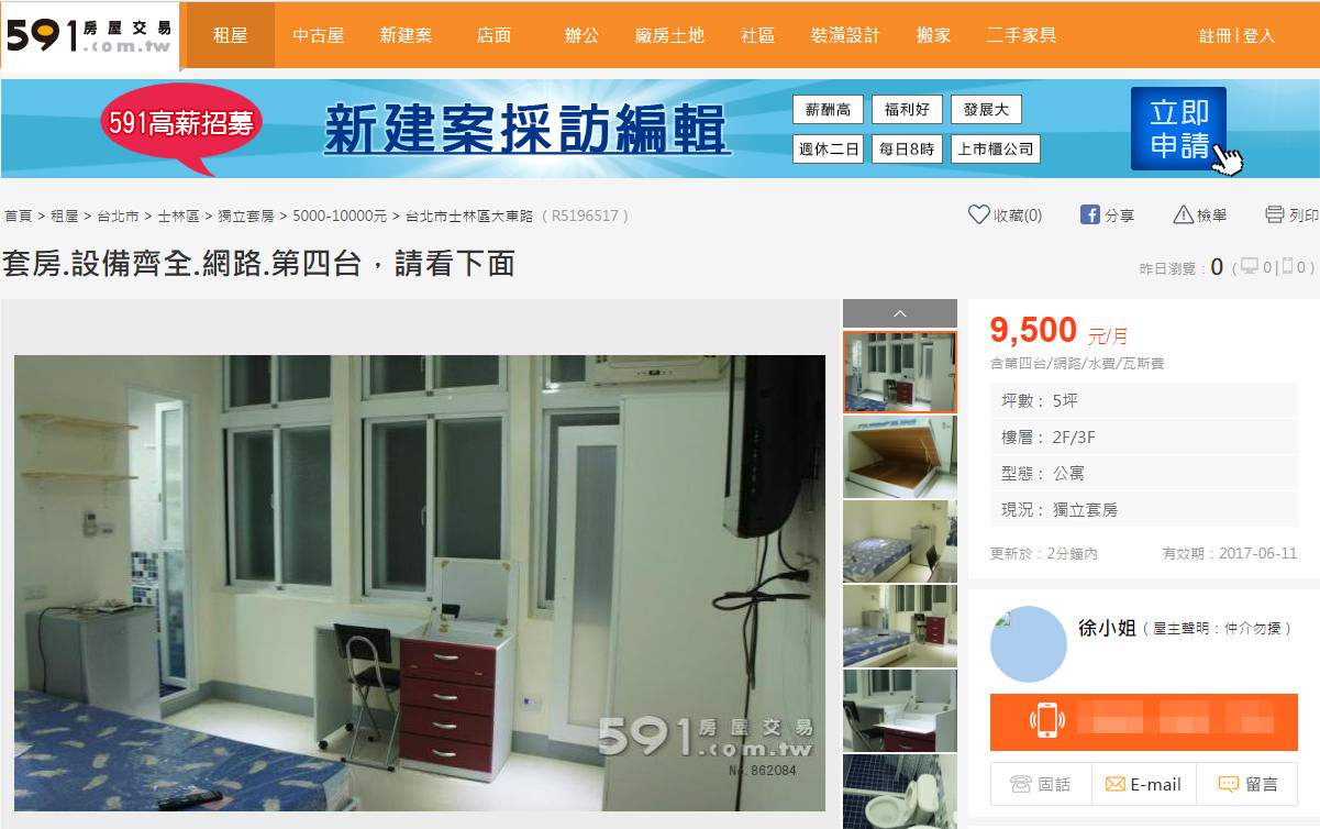 ▼這間位於士林夜市的套房刊載在591上,而房東在標題上寫了「請看下面」,但屋況、價格基本上都很普通,直到拉到屋況說明,才讓大家眼睛一亮。