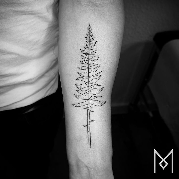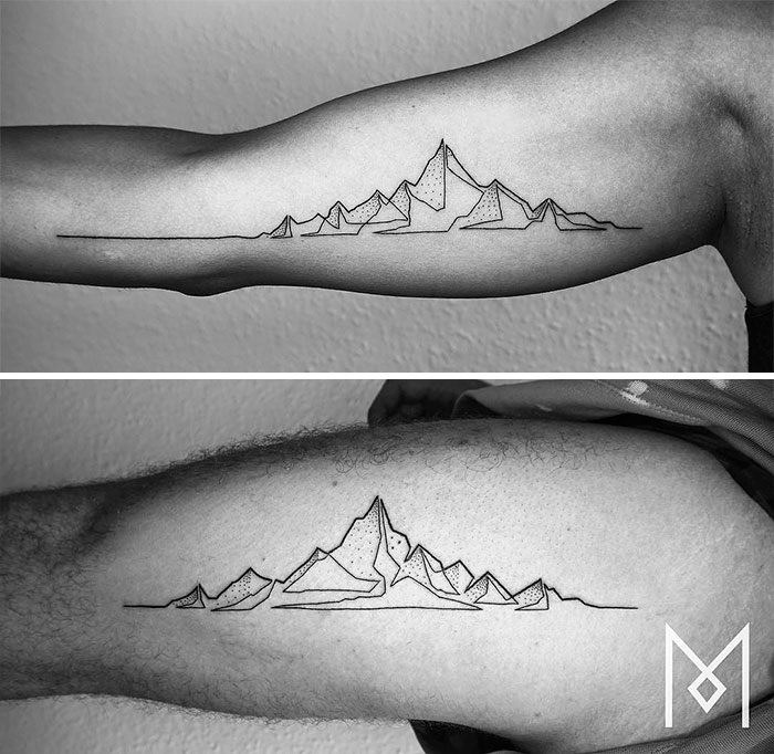 用最少的線條畫出這樣的圖案,裡面的複雜性和構圖設計簡直讓人不敢相信。這種極簡風的刺青確實比一般的刺青更加容易吸引一般人,讓人忍不住也想跑去刺一個了!