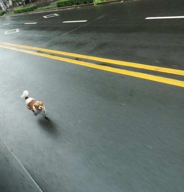 ▼狗狗的主人是一位老人家,當時她就在公車上。乘客們看到這一幕不忍心,又不能違反規定讓狗狗上車,看牠好幾次差點被車子撞到,一路跑得氣喘吁吁,忍不住勸告老人家,希望她把狗狗帶回家。