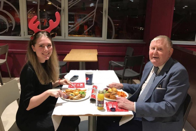 ▼​9.發現老人很孤獨,連聖誕節都要一個人過時,她提出一起出門約會。老人穿上了最好的西裝,還帶來了一束花。
