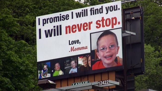 ▼​2.走失兒童看板:「我發誓會找到你,我永遠不會放棄!愛你的媽媽。」