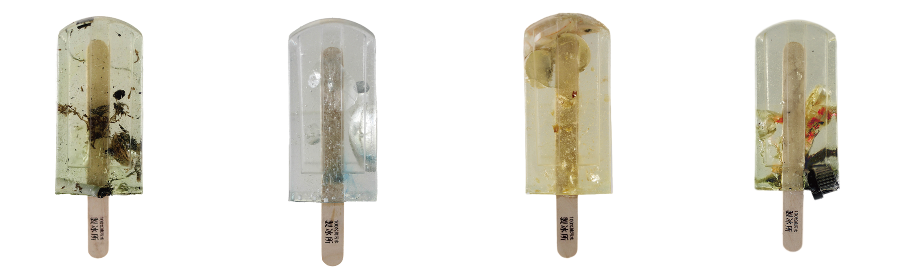 ▼三人表示,在去年7月決定畢展主題後,他們就分頭進行採樣。如果遇到特別的水源污染事件,還會在時間內趕往該地。在辛苦採樣2個月後,三人又經過一步步加工,才能做出這些充滿特色的冰棒!