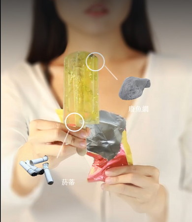 ▼台藝大視覺傳達設計系3名學生洪亦辰 、 郭怡慧 、鄭毓迪走遍全台備受污染的水源地,擷取其中的污水做成「冰棒」。看到這樣骯髒的內容物,更能深刻感受到台灣水污染的嚴重性。