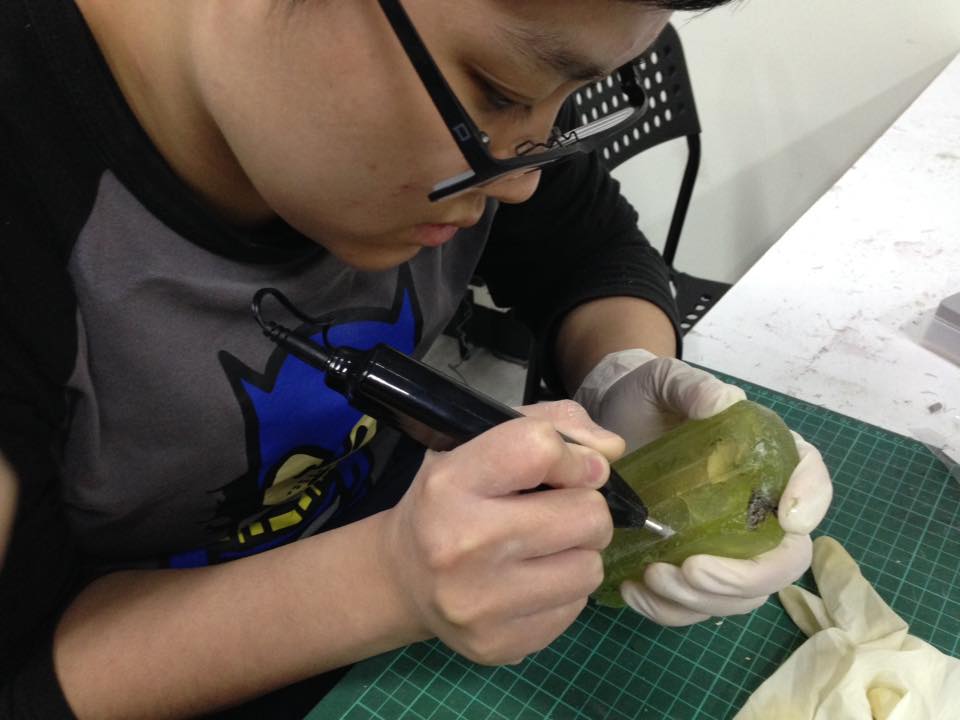 ▼這些冰棒就是他們的畢展作品「100%純污水製冰所」。洪亦辰受訪時指出,因為政府每次在宣導愛護水資源時,大多是走馬看花,觀眾看完後並不會留下深刻印象;才會利用冰棒這種貼近生活的物品,來喚起大眾對水資源污染的重視。