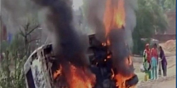 ▼民眾動用私刑將這些人打死之後,警察接到投報到場阻止,民眾竟然還對警車丟石塊、焚燒警車。