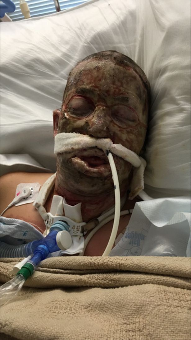 ▼去年9月,Courtney參加了一個營地晚會,當晚點火時,有人把汽油倒進營火裡助燃,沒想到火勢一下子變大,一團火球竄到了Courtney身上,她立刻慘叫了起來。朋友們將她送到醫院,醫生檢查後發現,她全身40%燒傷,臉部3度灼傷,整個臉都融化了。