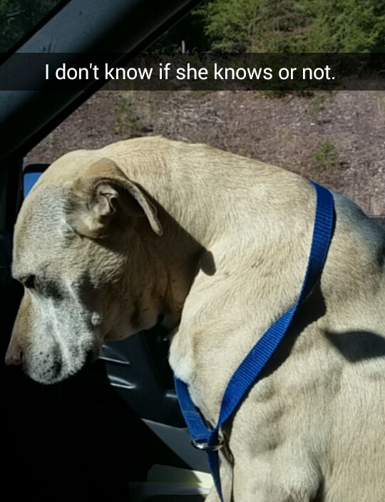 ▼執行安樂死當天,Kyle決定給Hannah一個美好的回憶。她開車載牠出門兜風,這是Hannah以前最愛的活動。不知道Hannah是否明白離別的時刻即將來臨,一路上都乖乖巧巧的,低頭的模樣讓人很心疼。