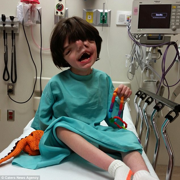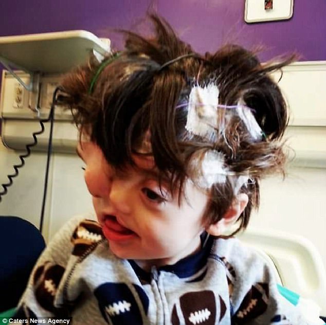 ▼經過多次手術,Tres的頭骨被重塑,裂口也被縫合,情況好了很多。父母用大麻油給他治療,以前他每天癲癇發作400次,現在只有40多次。