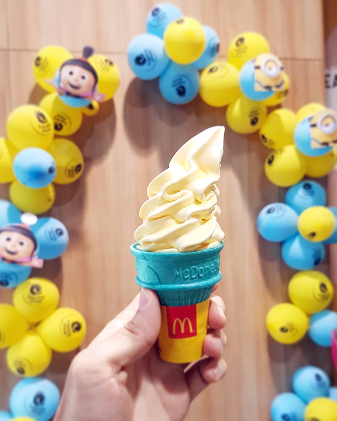 ▼看看這款小小兵冰淇淋,黃色與藍色的經典搭配非常萌。現在社群網站上已經有了#mcdgoesyellow標籤,潮人們都吃過啦。