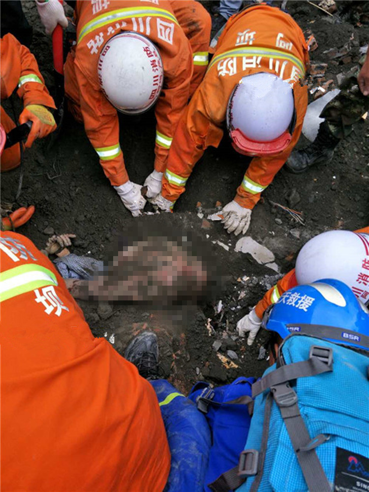 中國四川山崩「整村被活埋」現場讓搜救員泛淚,一對男女被發現時的姿勢讓現場的人都鼻酸…