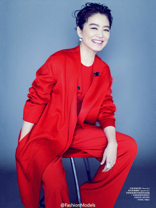 ▼穿上大紅褲裝的林青霞,彷彿也再度展現了當年的中性美,但已為人母的她,又比以往多了一絲柔和。