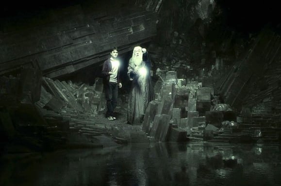 ▼​21.阿不思·鄧不利多與哈利在洞穴中,洞穴當然也是特別佈置的。